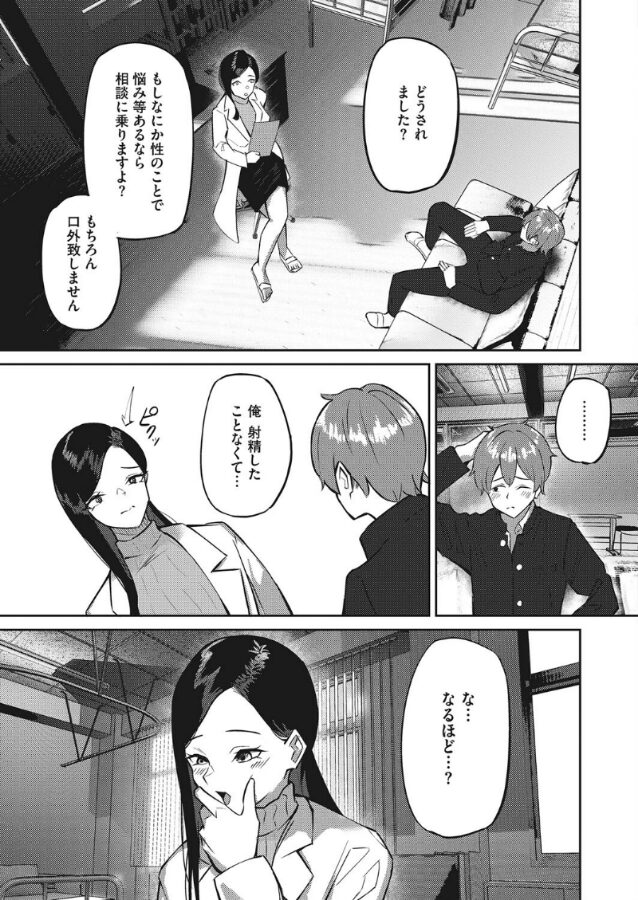 時は20XX年、少子化が進む原因を男性側にあると結論づけた政府は、一定の年齢を超えた男性に定期的な精液検査を義務付けた。しかしごくまれに精通していない人間もいるようで……。この物語はとある男性を精液検査に導いた保険医の奮闘を描いた物語だ!