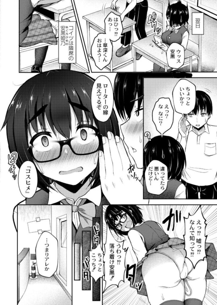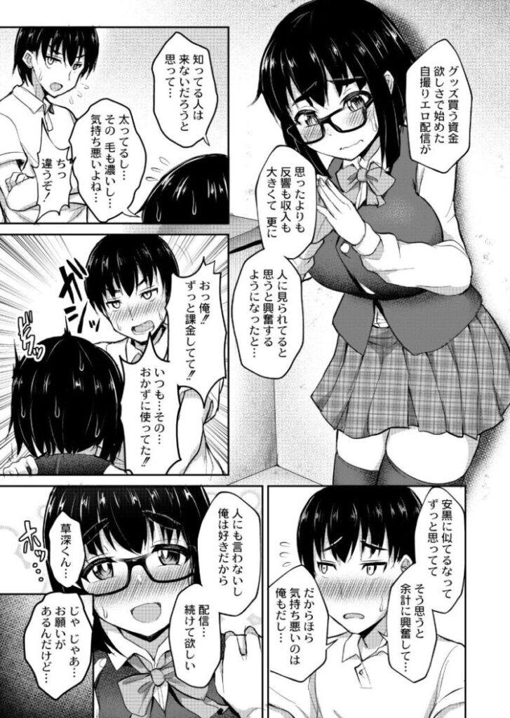 同級生の地味子が裏垢女子だった!?地味で眼鏡の巨乳ちゃん安黒と内緒のえっち◆エロ配信現場を直接見て欲しいと言われ部屋に連れてこられた主人公くん。そこにはマスク姿で牛柄マイクロビキニに牛耳、カウベルまで装着し、さらにはアナルプラグまでつける徹底ぶりの安黒ちゃんが…!!!