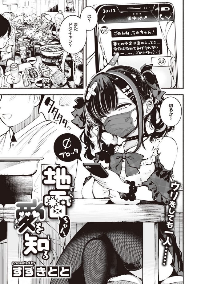 | 男性とP活してしまう事をなんとも思ってないような家出中の子がヒロインではあるものの、 最終的にきちんと人間らしさを回復するという良いストーリーになっている。 タイトルにある通り、ヒロイン・ちのちゃんの見た目はいかにもな「地雷系」女子。 そんなちのちゃんが淡い恋心を抱いていた遊くんと再会して、しっかりと女の子らしくなってしまう辺り大変なギャップ萌えである。 地雷系というスパイスがあるからこそのピュアな部分にドキッとさせられた。 遊くんのことを認知した後のトロンとした表情の書き分けもされており、作者さんの力量を感じさせる。 行為自体はマスクフェラを除いて実にノーマルなのだが、前述した通り、「普通の女の子」に戻っているという感じがして実に良い。 地雷系女子のオンリーワンになりたい人にとっての逆シンデレラストーリー。 見た目と違って実は良い子、みたいなヒロイン好きな人はぜひ。 |