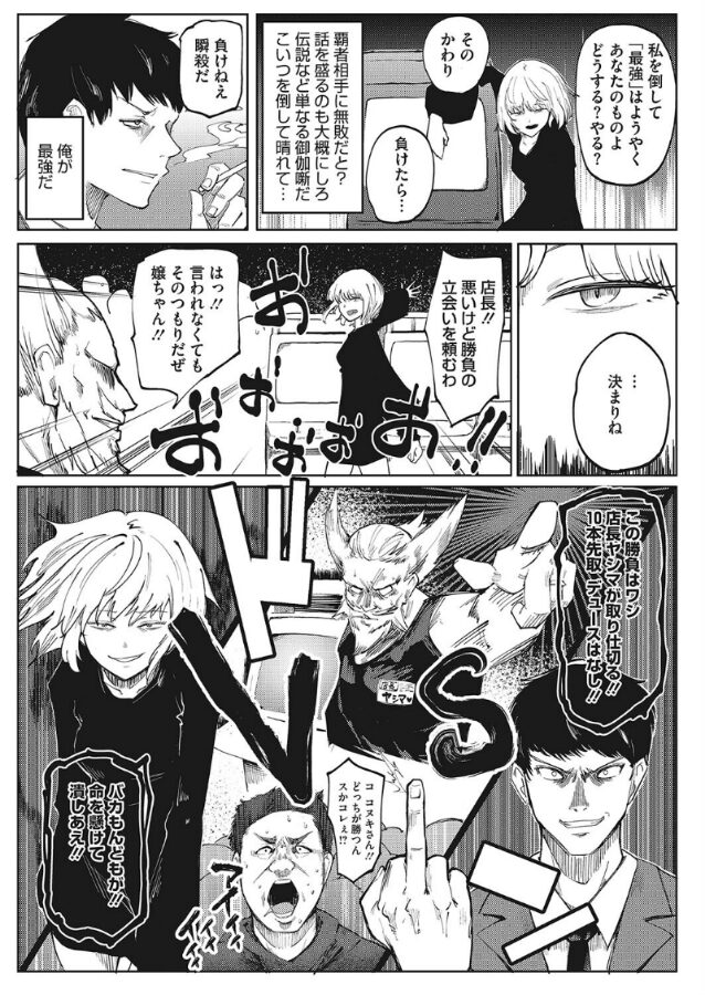 地方都市のゲームセンターを荒らしまくる無頼漢。彼にかなわずプライドを失っていくゲーマーたちの最後に立ちはだかったのが、伝説の女・黒猫だった。お互いの存在価値をかけて戦った先にあるものとは……、チ●ポヌキヌキセックスだった!! 竿をしごき倒され、イカサレまくる無頼漢の行く末とは!?
