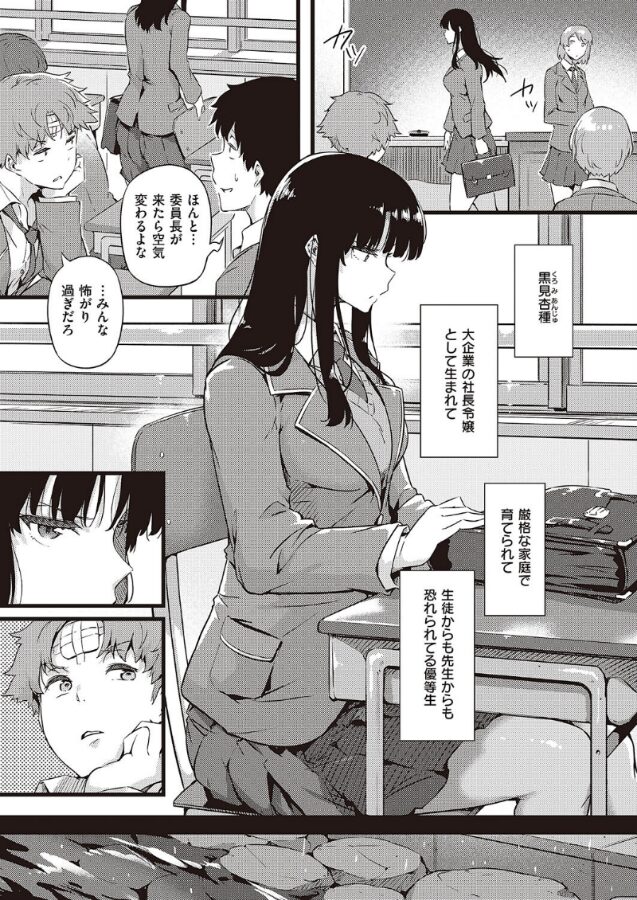 堅物委員長の杏種がエロ本を所持しているのを、たまたま発見してしまった糸埼!!後日、糸埼を呼び出した杏種は秘密を守ってもらうために『私を犯せ!!』と懇願してきて!?一度は断ったものの、彼の優しさに心を打たれた杏種は、その豊満ボディでエロ本のセックスを再現♪興奮してヌレヌレな杏種のアソコに、糸埼は容赦のないピストンで責め立てて…!画ヂカラ最高峰絵師・常磐緑先生淫筆! クール系委員長としっとり・ねっとり交尾の時間…!?