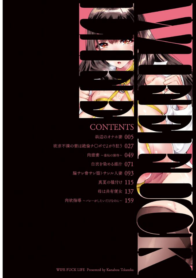 人妻×NTR作品を中心に、肉感たっぷりのヒロインたちが乱れるハードなSEX描写を描き続けた『金棒てかてか』初単行本が遂に完成!! 降り注ぐ特濃ザーメンが女たちの雌の本能を呼び覚ます!!! ————————— 【収録作品】 浜辺のオナホ妻 欲求不満の妻は絶倫チ○ポでよがり狂う 肉壺妻〜羞恥の接待〜 白衣を染める雄汁 騙サレ脅サレ堕トサレル人妻 真夏の種付け 母は共有便女 肉欲指導〜バレーがしたいだけなのに〜