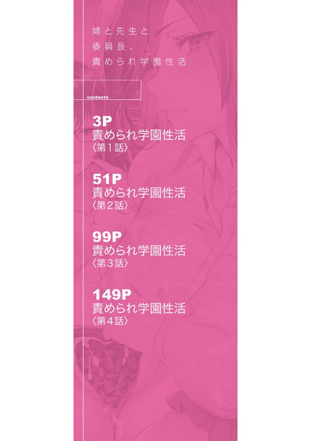 【第1話試し読み付き!!】責められ搾りつくされて、頭の中がおかしくなりそうなほど気持ちいい…エロ姉とスケベな美人女教師に好き勝手にチ●ポを弄られた主人公の聖。授業の合間の休み時間に、容赦ないフェラチオと舌技で二人に責められる!誰もいない保健室や図書室でも構わず校内でヤりまくる!その様子に気付いた委員長は校内でセックスしている3人の現場を押さえることに成功するが、聖が好きだった委員長は4人でHしようと提案されてしまい……!3人のプロポーション抜群の美少女に甘く責め立てられる!!昼休みには委員長にヌかれて放課後には姉ちゃんに責められる!そして授業中でもエロ女教師にガンガン責められイキまくる!【収録作品】責められ学園性活〈全4話〉【購入特典】表紙イラスト差分カラー