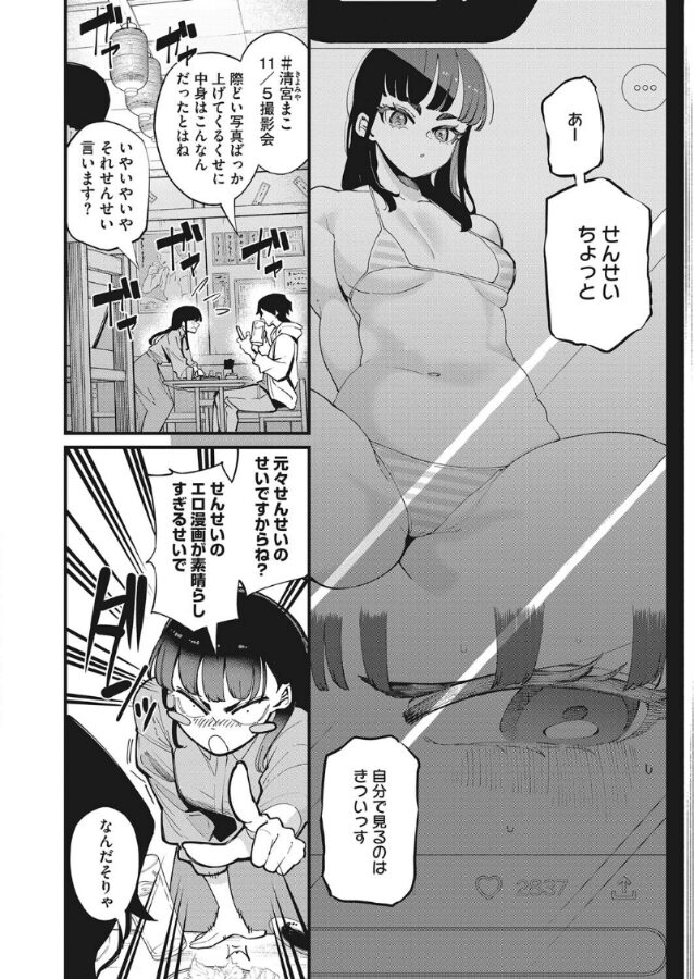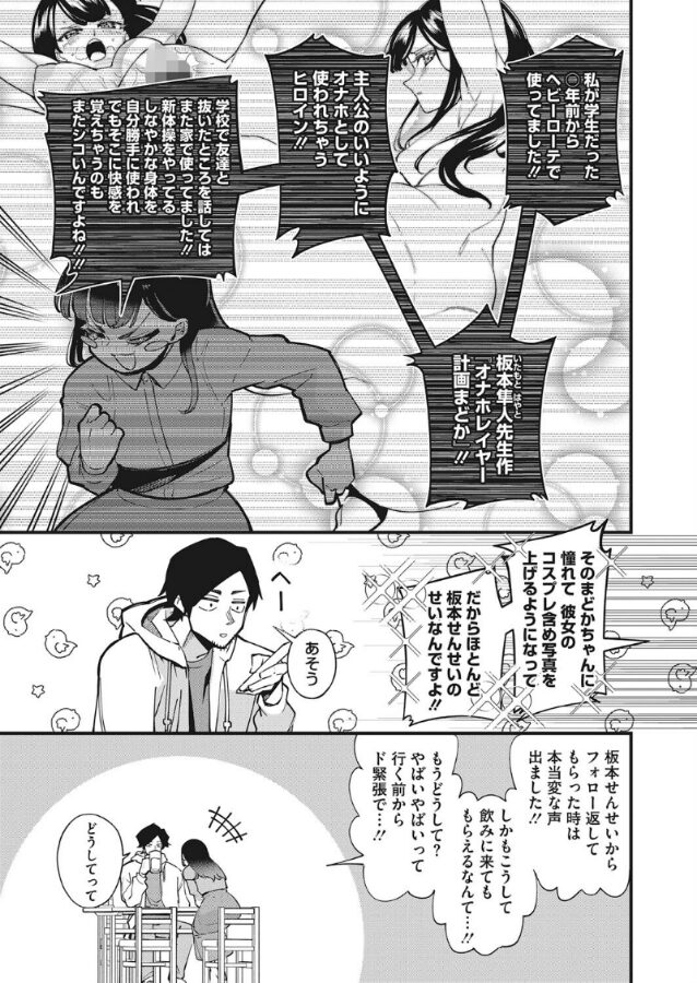 コスプレヤーのまこは、同人作家の板本先生とオフ会中。憧れの人を前に、興奮のあまり熱弁する彼女だったが、突如先生からセクハラ発言が飛び出す。その後も先生の口から発せられる数々の淫語。しまいには先生の家でのオフパコに誘われて……。