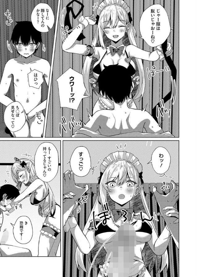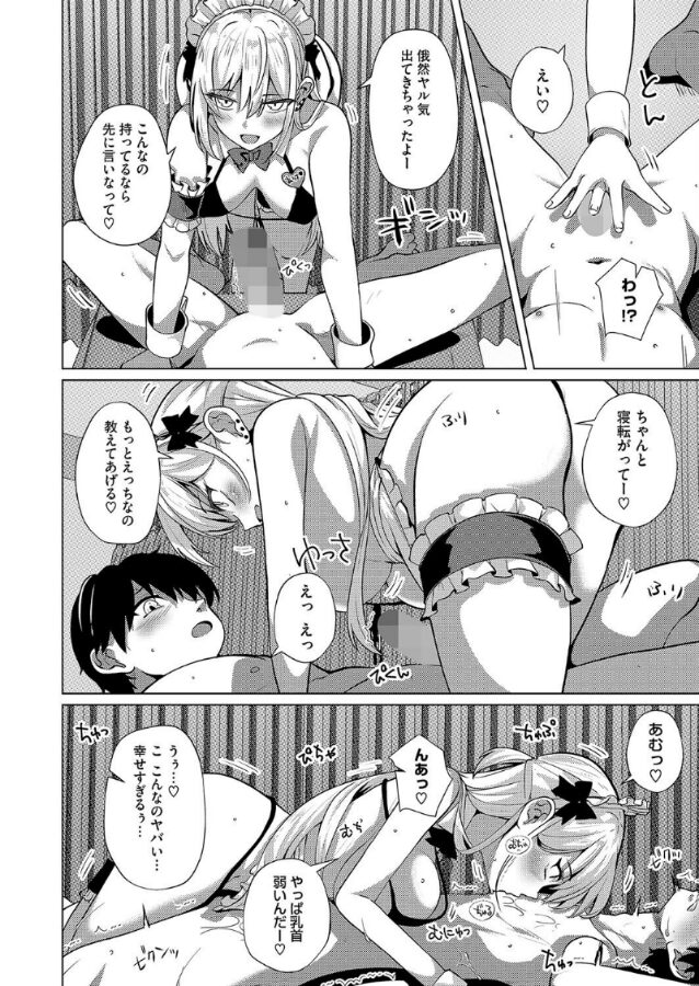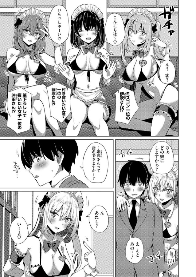 学校祭で催される『風俗メイド喫茶』♪ そのプレミアチケットをゲットし、ギャルの姫宮さんをご指名! キスから手コキで初めての射精♪ しかし彼女の方は満足しない様子……、だったら本番エッチの初めてもここでしちゃおう!! ノリノリギャルの騎乗位グラインドに童貞は何秒耐えられるのかな〜。