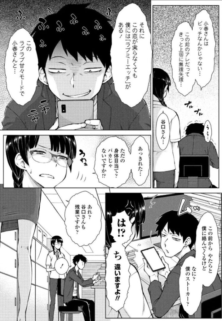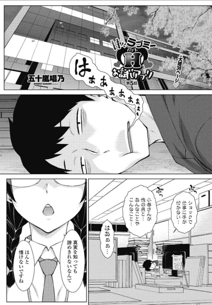 恋焦がれていた後輩・小春の社内姦通を目撃してタガが外れてしまった谷口。同僚の杉原がいるのも構わずついに小春に向かって催●アプリを使用!念願の甘々恋人エッチに夢中になる谷口だったが、やがて杉原まで服を脱いで顔面にのしかかって来て…!?……五十嵐唱乃「甘々ラブミーHお試しアプリ 第5話」