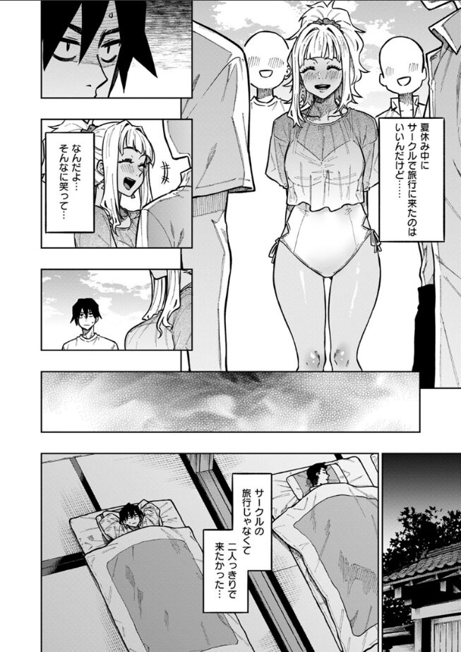 「実はね 下にビキニも着てたの」褐色ギャルのナミ先輩は俺の彼女。サークルの歓迎会の後、気が付いたらSEXして、そのまま付き合うことになった。今日はサークルの旅行で海に来たけれど、先輩が着てきたのはまさかの露出少なめワンピ水着!? ギャップにやられた男共にチヤホヤされて、悶々としていたら、夜中に先輩がこっそり布団に潜り込んできて……。俺だけに見せる、ダイタン水着でこっそり布団エッチ!!