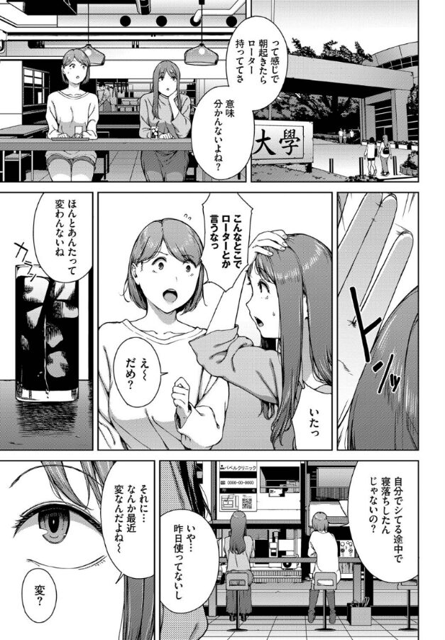 | ホラーとエロスって相性かなりいいんですね。 欲求不満疑惑を友達とおしゃべりする女の子。勝手にローターを…という話を外でするのはなかなか度胸が座っていますね。 彼氏相手に「私はエッチだけど…」と認めているのもシンプルにエロい。 睡眠中にスマホ撮りしてみたら、乱交プレイしまくり。睡眠姦ではなく、完全に意識があるように見える女の子が、不特定多数の男性とセックスしまくりです。 「いえーいハメられてます」とカメラに向かってエロ発言してるところなんかただのビッチオンナ。 そこから目覚めると、確かに中出しされてしまった証拠が…。 じんわりと熱い精子が湧き出てきます。 オチどこやねん!と突っ込みたくなるものの、この短さは読みやすいです。 |