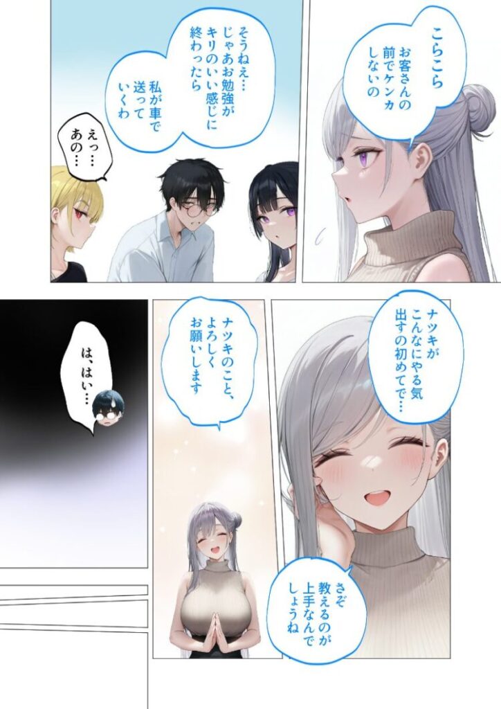 ナツキとアキホの姉妹それぞれとセックスしてしまったカズキは、そそくさと帰宅しようとしていたが三人目の姉妹・長女のミフユに遭遇してしまう……。夕飯をごちそうになり、ますます逃げられない状況となったカズキは、ナツキにアキホとのことを打ち明けるも全く気にする素振りはなく、さらにカズキから搾り取ろうと姉妹からの性的な攻撃はとどまることを知らない。ついには姉妹と3人で――……!!第3話本編41P収録!【注意事項】※本作品のシチュエーションは全てフィクションです。登場する人物や設定等は、すべて架空のものとなります。※この作品内に登場するキャラクターは全員20歳以上です。※本作品はStable Diffusionを使用して制作しております。※犯罪、その他違法行為を美化または助長する意図はございません。