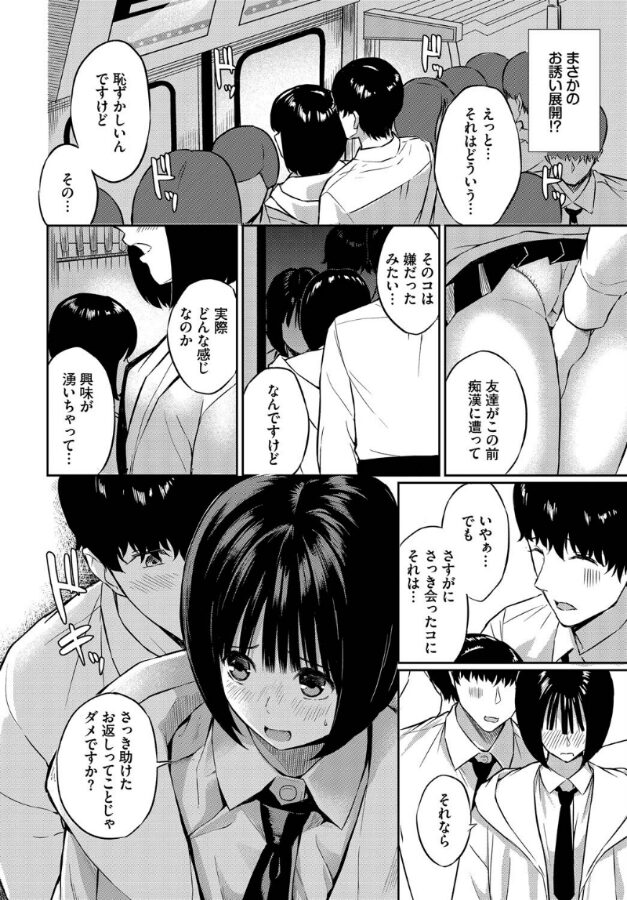 【人助けのお返しに××を要求!? 発情娘はエッチなことに興味津々♪】欲情ルーキー・ばしょたろうが贈る、電車の中でのアブナイプレイ!合コンに失敗して落ち込む主人公は、電車のホームでヒロインに助けられる。お礼を伝え立ち去ろうとする主人公の手を取り彼女は一緒に電車の中へ!すると何故か主人公の手を自分のパンツに押し付ける彼女。二人の行為はだんだんエスカレートし、ついにはセックスが始まって…!?