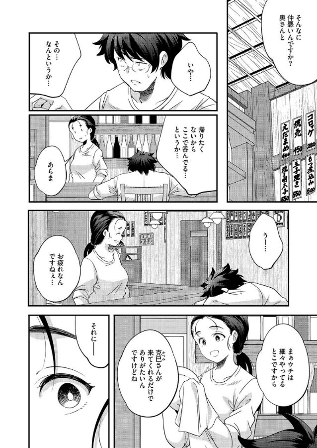 妻と喧嘩中の克己は、今日も馴染みの小料理屋で時間を潰していた。そして、家に帰りたくないあまりに飲み過ぎて寝てしまう。気づくと店は閉まっており、隣には小料理屋の若女将・かすみの姿があった。克己は、彼女の柔らかい雰囲気と上手い料理に癒やされたくて、この店を贔屓にしていたのだ。しかし今、隣に座るかすみは、普段の優しい女将の顔ではなかった。その目と声に内に’オンナ’を秘めて、克己に想いを伝えるかすみ。妻も子もいながら、克己はそれに応えてしまう──。