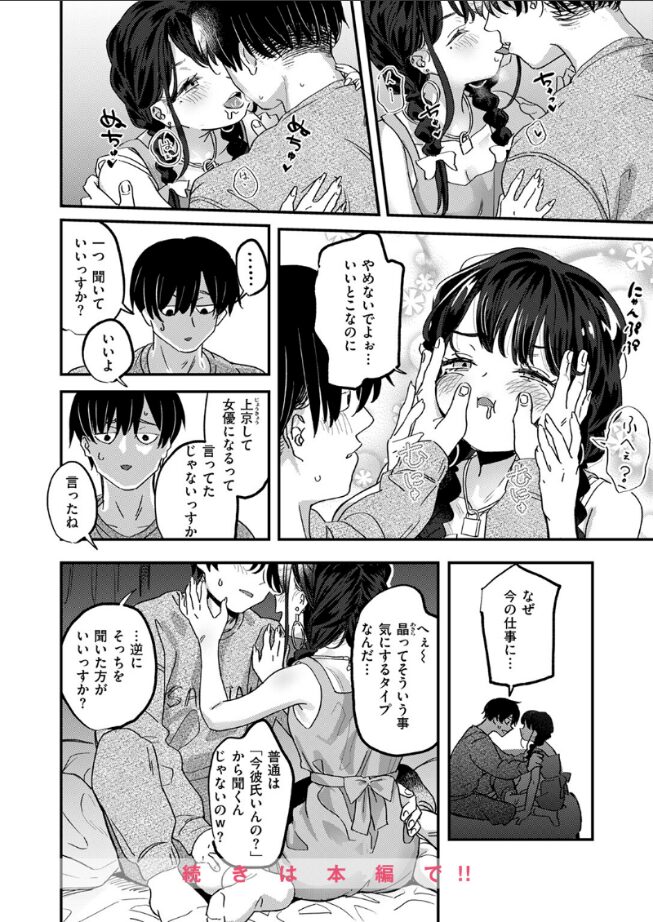 | 映画監督を目指して映像関係の仕事に就いたものの、それはエロ配信の制作現場で、そこにかつての彼女のめいが居たのは最悪の再会だといったところから始まった今作です。 そのめいとは出演者とスタッフの1人といった関係のため、よそよそしい態度しかとれない晶に対し、以前より大胆な性格になっためいが迫ってきたところから面白くなってきました。 2人は以前に関係をもっていますが、今の職場の関係からそれはいけないと思いながらも、結局始めてしまう2人の行為のシーンはとても興奮できるものでした。 それは次の日の仕事を休むことになってしまうまでとめどなく続き、結局よりを戻すことになった2人ですが、お互いに思っていたことも言えて、とてもいい終わり方だと思いました。 |