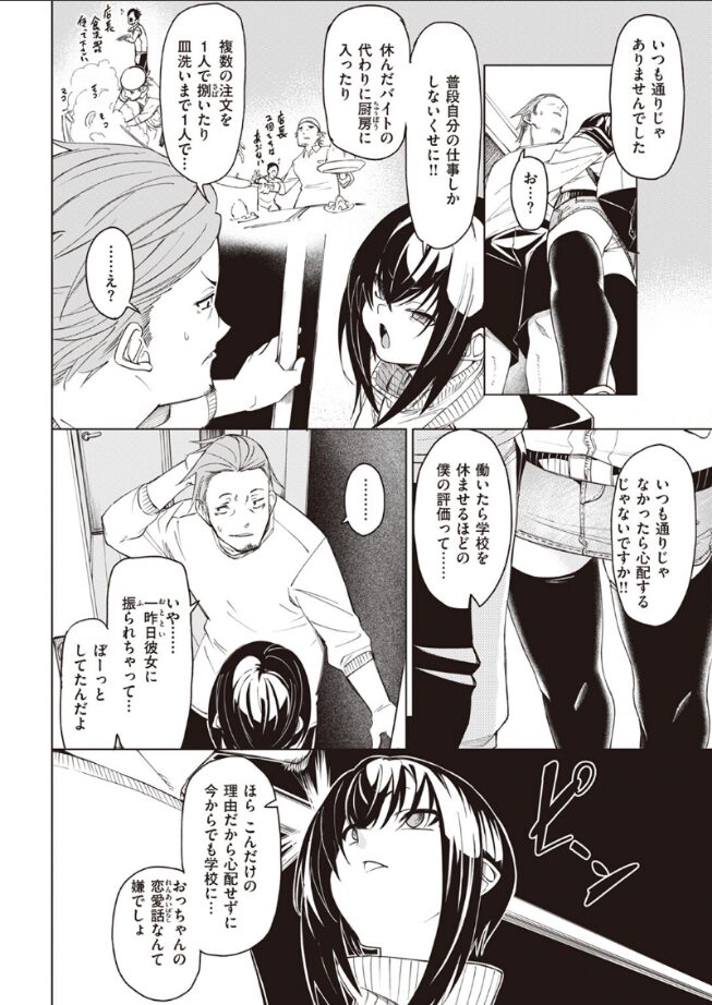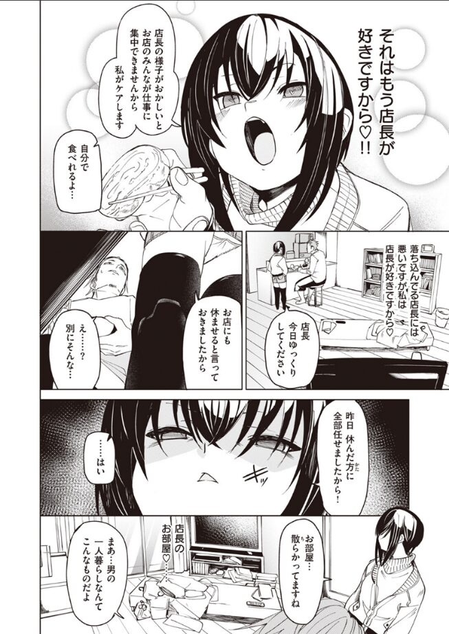 「店長は傷心中みたいなんで今日は私が面倒を見ます!!」昨日の店長の様子がおかしかったことを気にして、学校を休み家まで様子を見に来たバイト娘の理央(りお)ちゃん。話を聞いたところ、彼女にフラれてぼーっとしちゃっていたみたい。店長のことが好きな理央ちゃんは、チャンスとばかりに家にあがりこむのだが……?