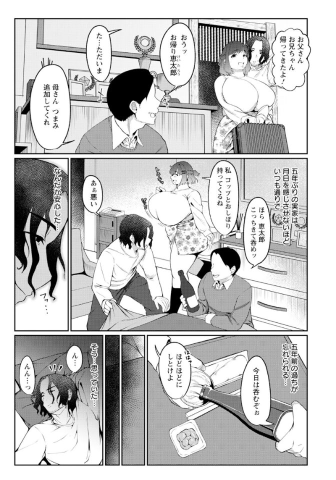 とある事情で避けていた実家に帰った男。 暖かく迎え入れる家族にほっとしていると、兄思いの妹から衝撃の告白が…! 隠していた雄と雌の本能が、お互いを貪りあう!!