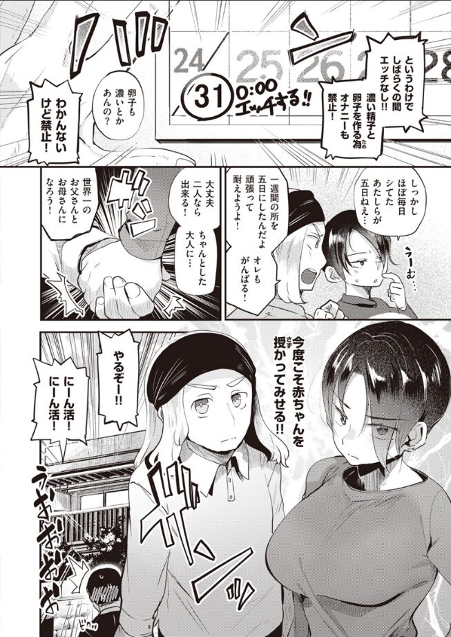 (無理っ♪ ムリむり♪ 絶対勝てない♪ 孕むコレ♪)毎日のように暇さえあればエッチしている月(つき)くんと千夜子(ちやこ)ちゃんの夫婦。本格的に子供を作ろうと妊活を始めるも……全ッ然デキない!!毎日ダラダラエッチし過ぎが原因だと考えた二人は、濃い精子と卵子(?)を作るため5日間の禁欲を決めたが……ホントにそんなガマンできるの……?