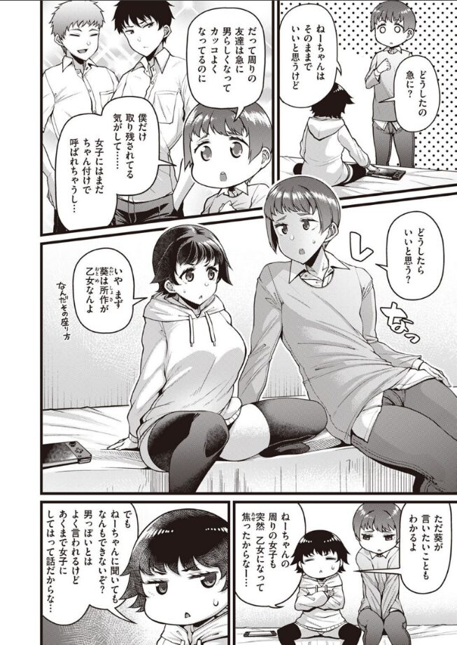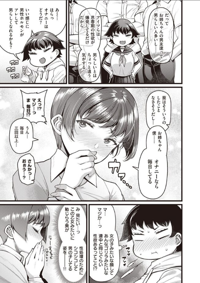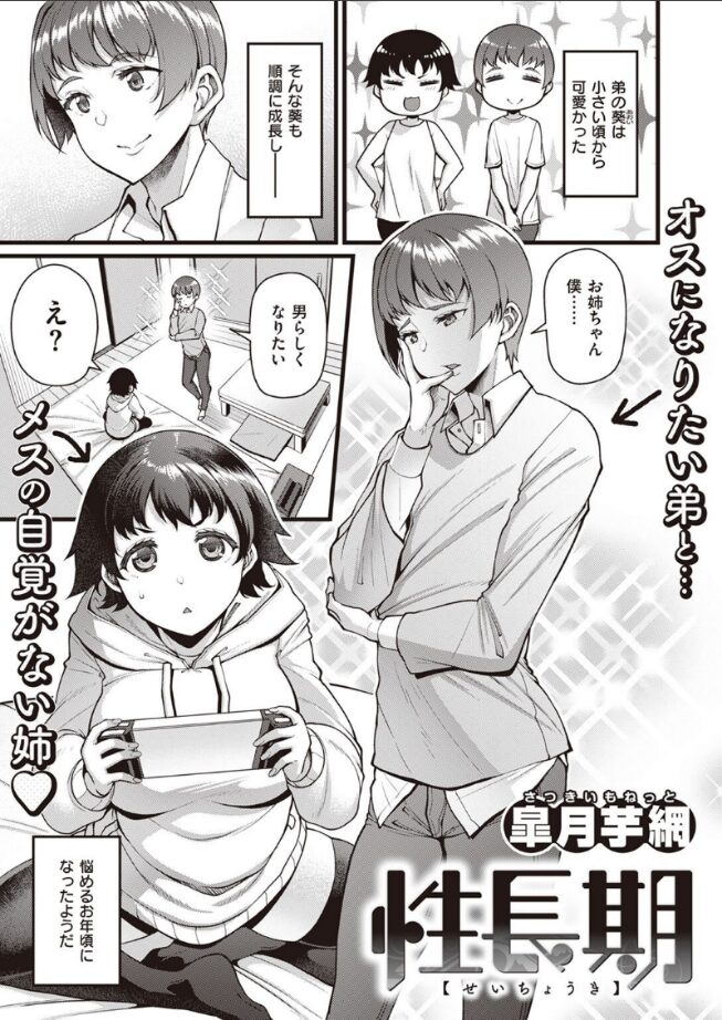 「ねーちゃんにオナニー見せてみ? 葵(あおい)が男らしいか姉ちゃんが見てやる!」乙女すぎる弟から「男らしくなりたい」と相談された姉。冗談でオナニーの回数を聞いたところ、意外と……どころか毎日3回もシちゃってるとのこと。乙女な弟が普段どんな風にシてるのか見たくなった姉は、見せて欲しいとお願いしたところ……いきなりチクニーを見せられてしまった!!これ以上変なオナニーを覚えさせないために――姉はカラダを使って男らしさの指導をはじめる……!! オスになりたい弟×メスの自覚がない姉がガチ近親SEX!!