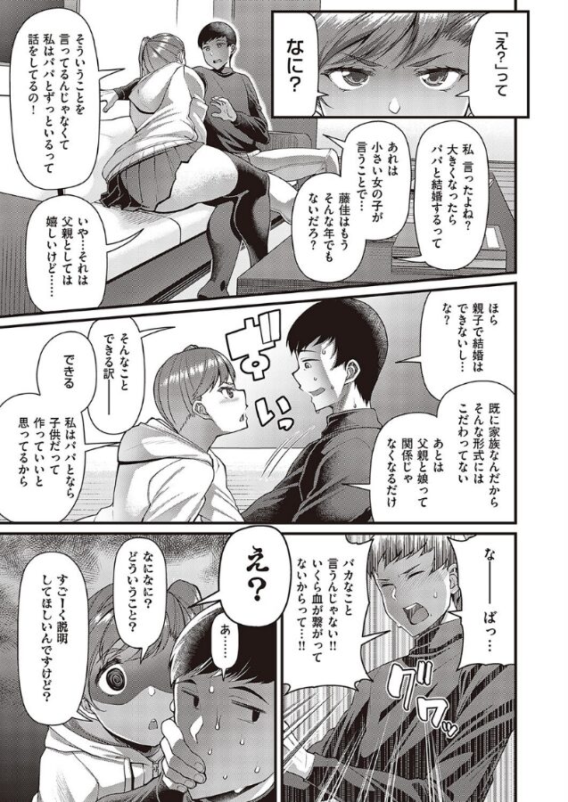 妻に浮気され、最愛の娘・藤佳は間男の子供だと知ってしまった僕。それでも、愛情を注いで育ててきたかわいい娘は、パパに子作りを迫ってくる…!?すっかり大きく育ったおっぱいと強引なキスでエッチのおねだりをされた、いくらパパでも断れないっ!!痴女っ娘の大家・皐月芋網先生が熱筆! 親子愛を超えた父娘のラブラブ子作り♪